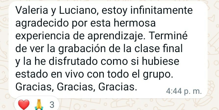 + Workshop de 2 Clases EXTRA de práctica en vivo por videollamada para grupo reducido de 12 personas con atención personalizada facilitado por Valeria Olivero.